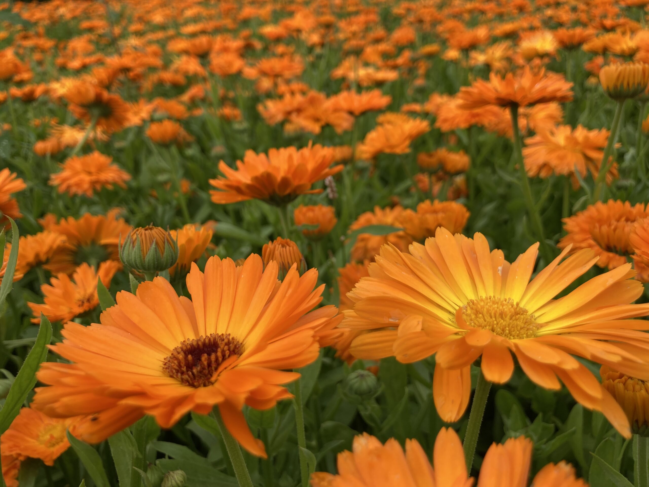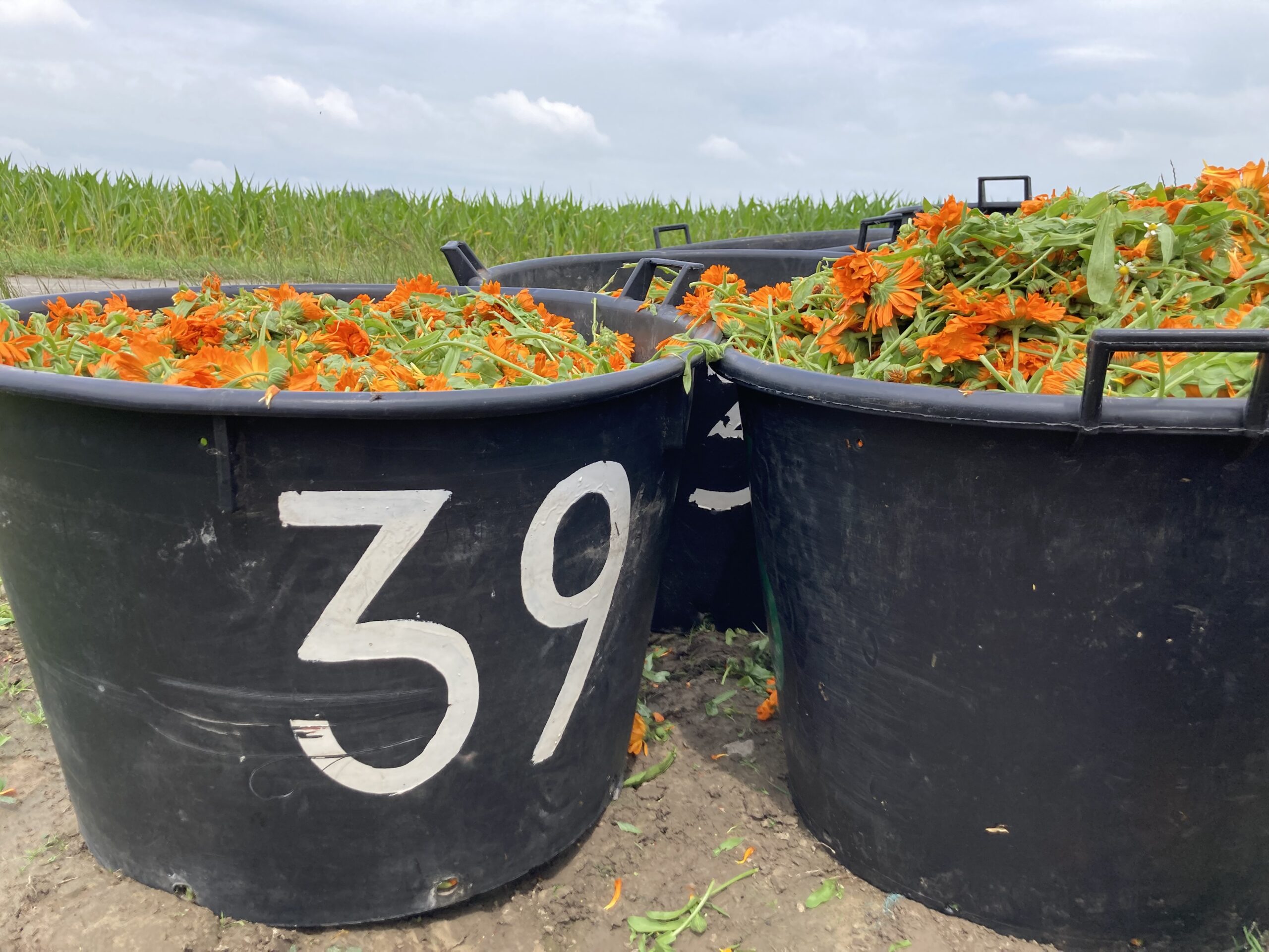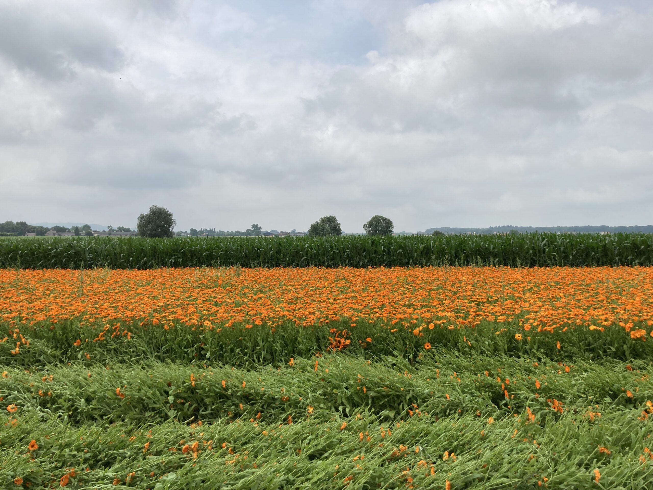 The final upstream production strategy we are using in the InnCoCells project is the cultivation of plants in greenhouses or in the open field. This is similar to conventional agriculture although we will be harvesting the plants to extract cosmetic ingredients rather than food, feed, fuel or materials as would be the case for typical crops. The pictures below show the cultivation and harvesting of marigold, a source of many valuable metabolites.